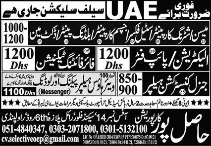 Latest Hasilpur Corporation Construction Posts UAE 2025