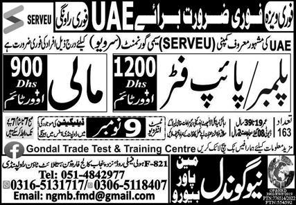 New Gondal Manpower Bureau invites applications for job positions advertised in daily Express dated 8 November 2022 for following vacancies in Abu Dhabi, sharjah UAE.