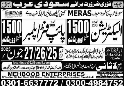 Lasani Trade Test & Technical Training Center is looking for candidates for following posts as per job advertisement published in daily Express Newspaper of June 17, 2025 for location Jeddah, taif Saudi Arabia: