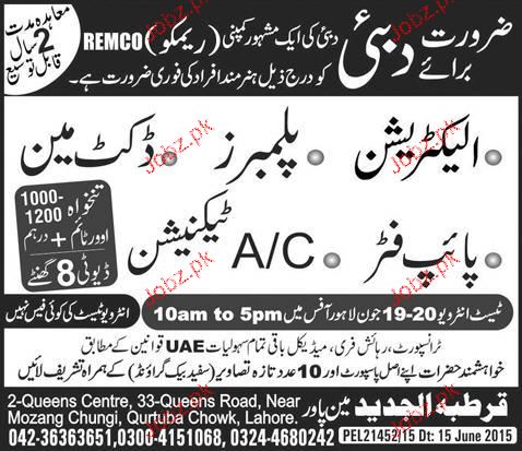 Pipe Fitters, AC Technicians, Ductman Job Opportunity