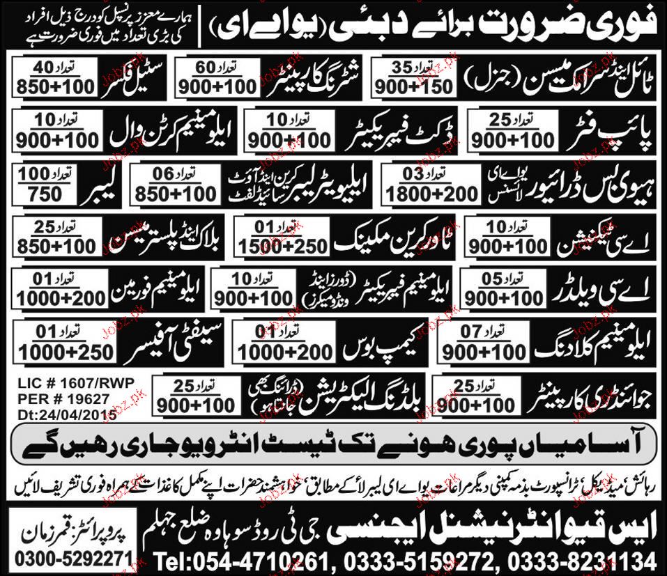 Pipe Line Fitters, Shuttering Carpenters, Mason Wanted