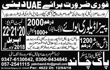 Latest Pak Chand Technical and Trade Center Posts UAE 2025