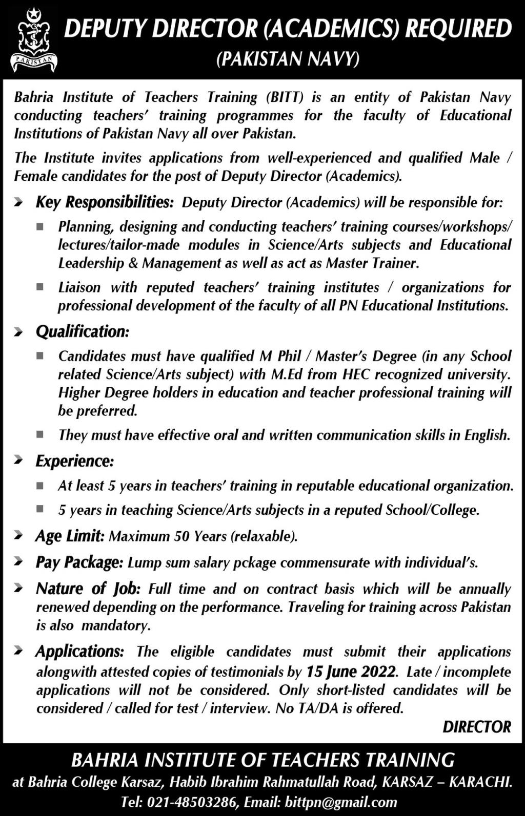 Apply as per details in job advertisement. Login to view further details of how to apply via https://www.jobz.pk online.