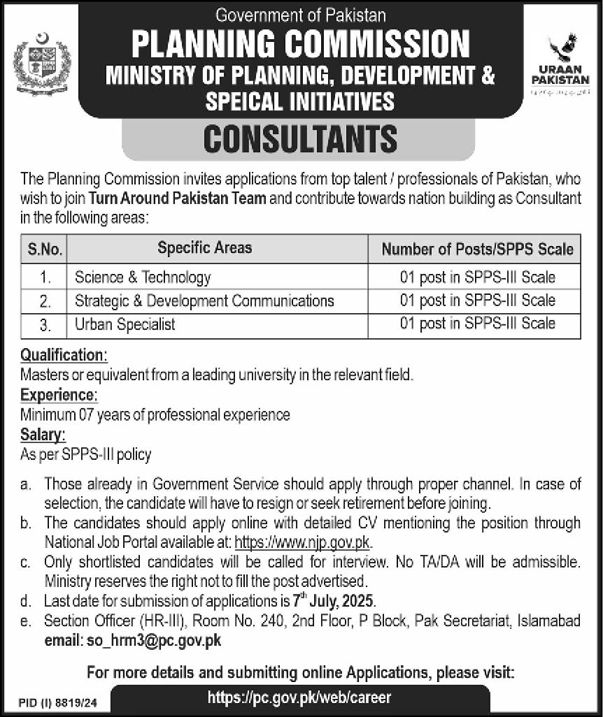Latest Planning Commission Consultant Posts Islamabad 2025