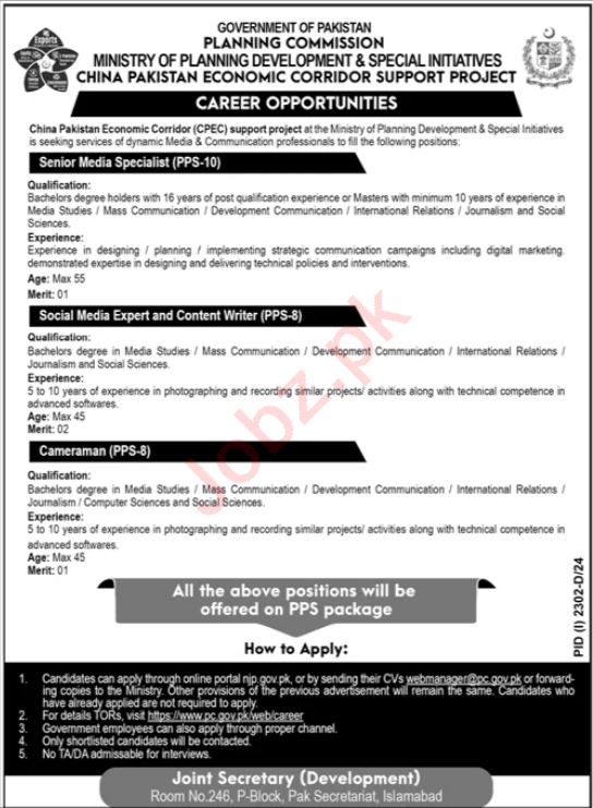 Planning Commission Islamabad, islamabad Islamabad Pakistan invites applications from eligible candidates for the post of content writer, cameraman, media specialist and media expert as per advertisement of September 28, 2024 published in daily Jang Newspaper. Candidates with Bachelor and Master etc. educational background will be preferred.