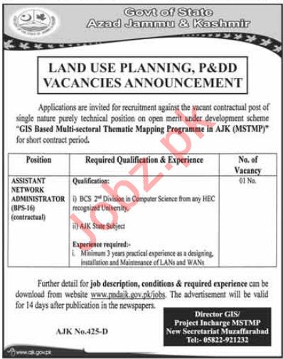 Latest Planning & Development Department Admin Clerical Posts Muzaffarabad 2025