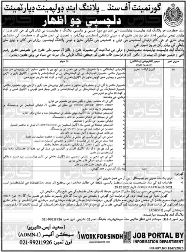 Planning and Development Department latest Government Management jobs and others can be applied till 23 June 2025 or as per closing date in newspaper ad. Read complete ad online to know how to apply on latest Planning and Development Department job opportunities.