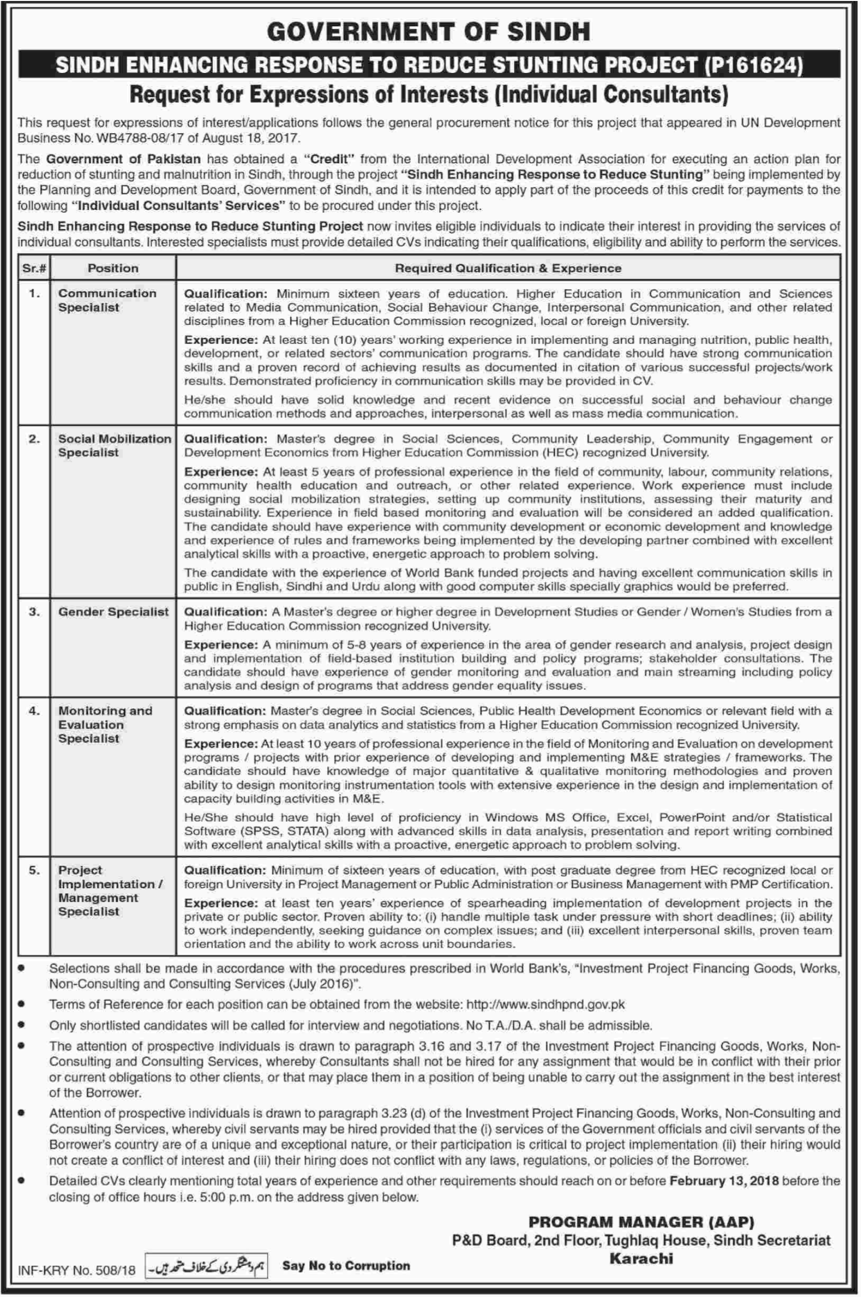 Planning & Development Organization PND Jobs For Specialist