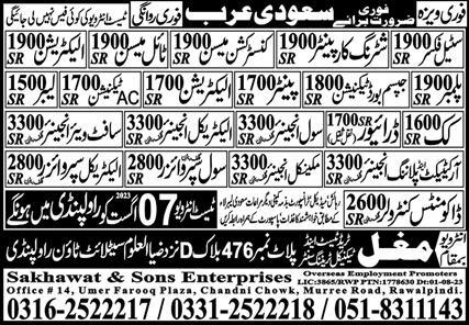 Latest Overseas jobs in Mughal Trade Test & Technical Training Center in Manufacturing and others can be applied till 7 August 2023 or as per closing date in newspaper ad. Read complete ad online to know how to apply on latest Mughal Trade Test & Technical Training Center job opportunities. Some jobs in Mughal Trade Test & Technical Training Center may require skills like Air Conditioning, Software Engineering, Cooking, Driving, Architecture, Mechanical Engineering, Civil Engineering, General Labor, Electrical Engineering and Documentation. Salary varies from 250000. Overtime might be allowed. Facilities like medical, accommodation and transport may be provided.