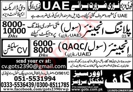 Gulf Overseas Technical Services invites applications for job positions advertised in daily Express dated 8 October 2023 for following vacancies in UAE, dubai UAE.