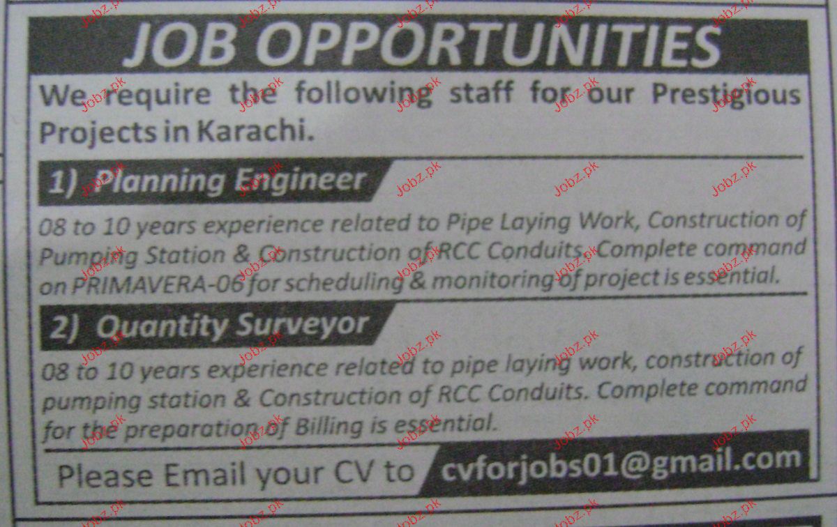 Planning Engineers And Quantity Surveyors Job Opportunity