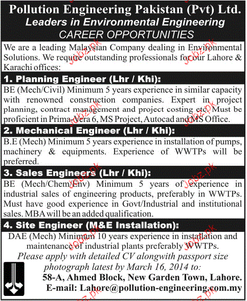 Planning Engineers, Mechanical Engineers Job Opportunity