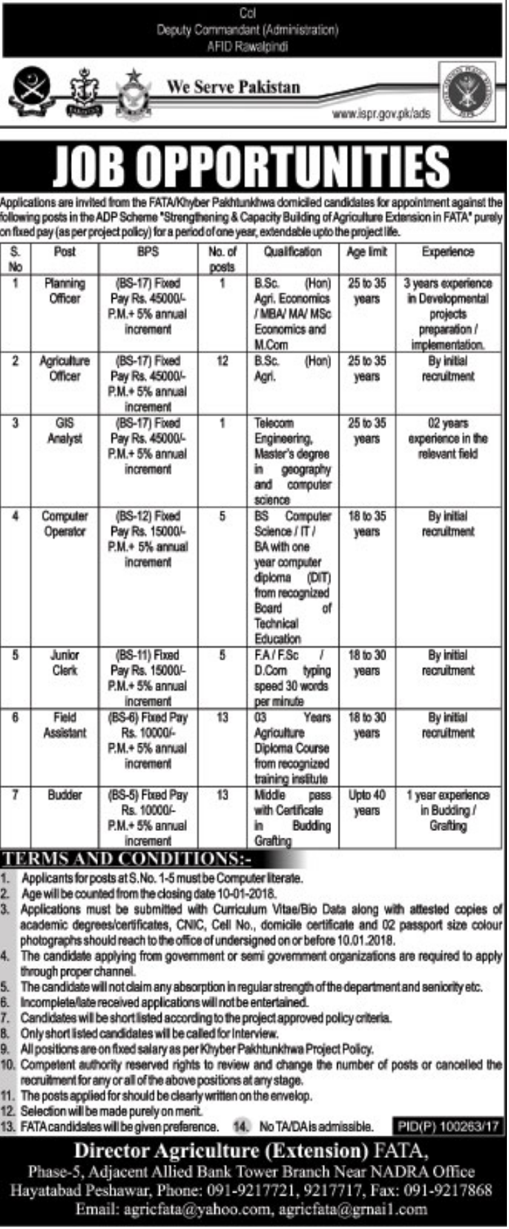 Latest Directorate General Agriculture Management Posts Peshawar 2025