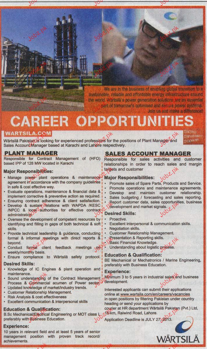 Plant Manager And Sales Account Manager Job Opportunity