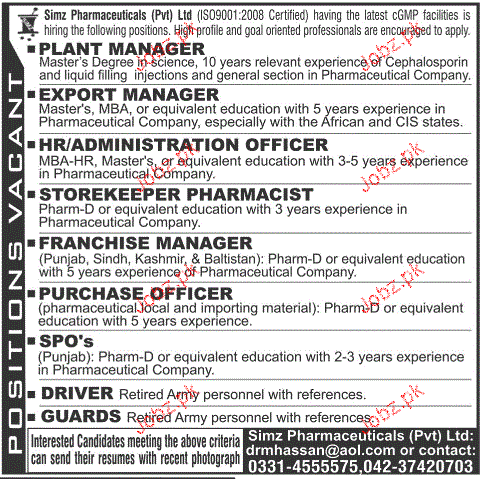 Apply as per details in job advertisement. Login to view further details of how to apply via https://www.jobz.pk online.