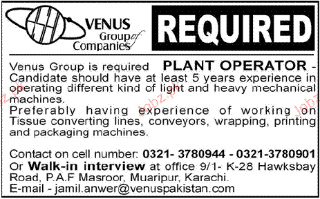 Plant Operators Job Opportunity