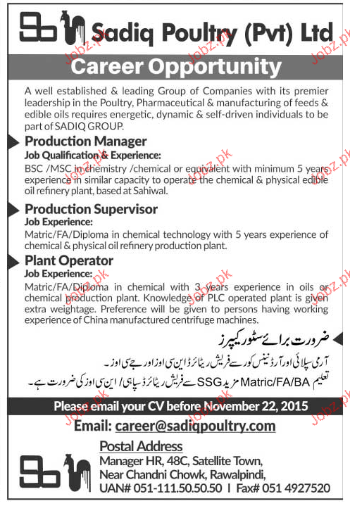 Apply as per details in job advertisement. Login to view further details of how to apply via https://www.jobz.pk online.
