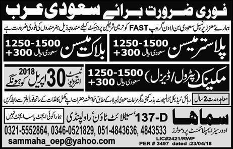 Latest Sammaha Overseas Employment Promoters Construction Posts Saudi Arabia 2025