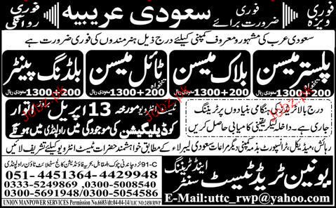 Plaster Mason, Block Mason, Tile Mason Job Opportunity