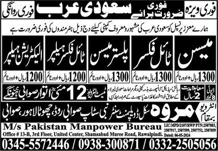 Plaster Mason & Electrician Helper Jobs 2024 in Saudi Arabia