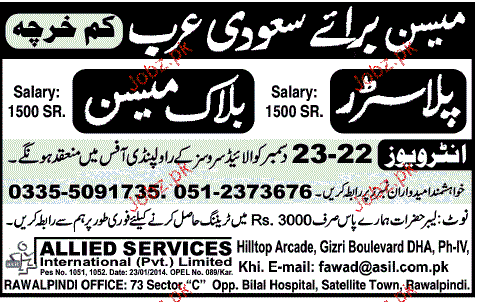 Plasters And Block Mason Job Opportunity