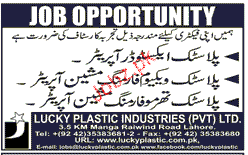 Plastic Exvitor, Machine Operators Job Opportunity