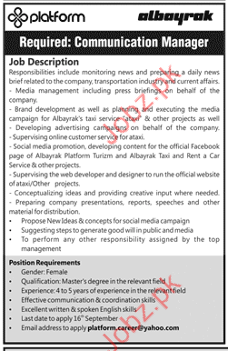 Plateform Communicatrion Manager Jobs 2018