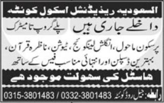 Al Saudia Residential School Play Group to Matric Classes admissions 2023 has been started. Eligible students who qualify as per admission criteria in Al Saudia Residential School Quetta Balochistan Pakistan can apply in Science School for academic year 2023. Eligible candidates for admissions in Primary, Matric and Middle can apply as per Private institute criteria and before closing date 12 April 2023 after reading advertisement online. Read newspaper ad for exact details.