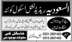 Al Saudia Residential School admissions 2025 for Playgroup to Matric has been announced. Eligible students who qualify as per admission criteria in Al Saudia Residential School Quetta Balochistan Pakistan can apply in Science School for academic year 2025. Eligible students for fulfilling criteria for admissions in can enroll as per Private admission policy 2025 till closing date. Read newspaper ad for exact details.