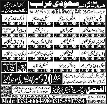 D ASMACS Overseas is looking for candidates for following posts as per job advertisement published in daily Express Newspaper of December 14, 2025 for location Riyadh, riyadh Saudi Arabia:
