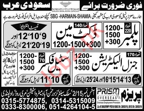 Latest Prism Overseas Employment Promoters Labor Posts Saudi Arabia 2025