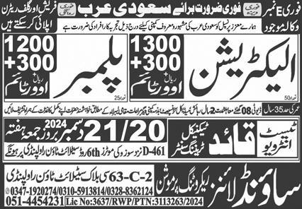 Plumber & Electrician Jobs 2024 in Saudi Arabia
