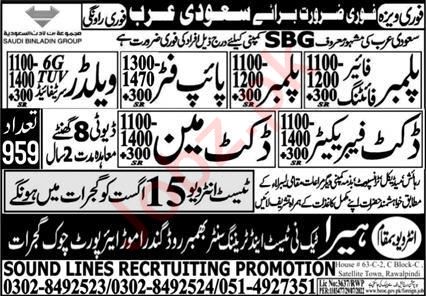 Soundlines Recruitment Promotion invites applications for job positions advertised in daily Express dated 14 August 2022 for following vacancies in Saudi Arabia, saudi arabia Saudi Arabia.