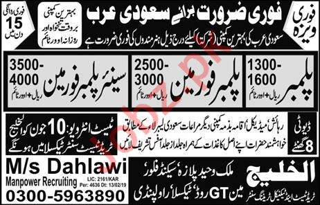 Plumber & Plumbing Foreman Jobs In Saudi Arabia
