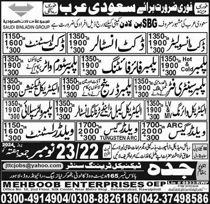 Jeddah Technical Trade Center is looking for candidates for following posts as per job advertisement published in daily Express Newspaper of November 14, 2024 for location Dammam, riyadh Saudi Arabia: