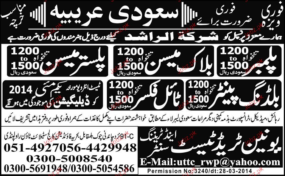 Plumbers, Block Mason, Plaster Mason Job Opportunity