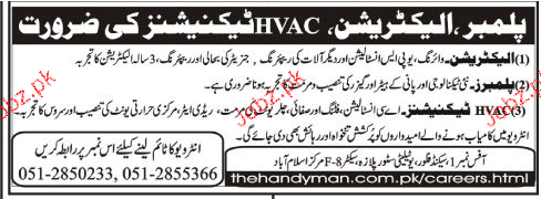 Plumbers, Electricians And HVAC Technicians Job Opportunity