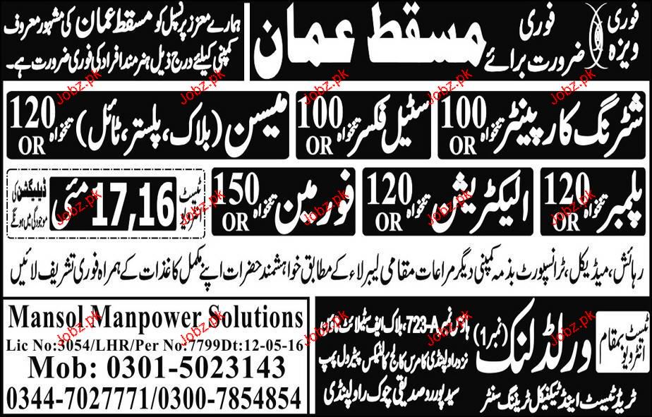 Plumbers, Electricians, Mason, Steel Fixers, Foreman Wanted