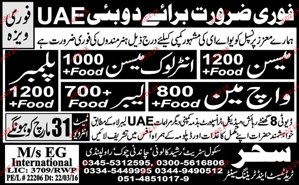 Plumbers, Mason, Watchmen and Helpers Job Opportunity