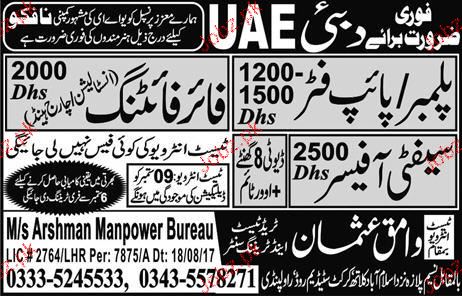 Plumbers, Pipe Fitters, Fire Fighting Charge Hand Wanted