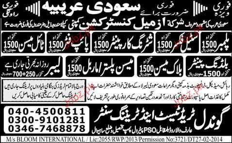 Plumbers, Steel Fixers, Shuttering Carpenters Job Opportunit