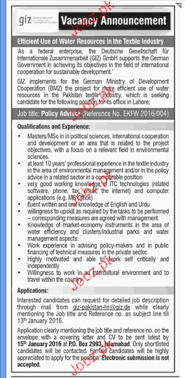 Apply as per details in job advertisement. Login to view further details of how to apply via https://www.jobz.pk online.