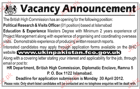Apply as per details in job advertisement. Login to view further details of how to apply via https://www.jobz.pk online.