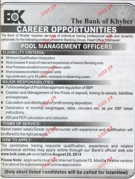 Apply as per details in job advertisement. Login to view further details of how to apply via https://www.jobz.pk online.