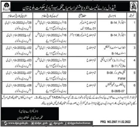 Population Welfare Department invites applications for job positions advertised in daily Jang dated 12 February 2022 for following vacancies in Quetta Balochistan Pakistan.