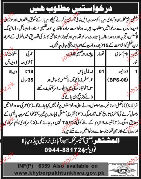 Latest Population Welfare Department Driving Posts Upper Dir 2025