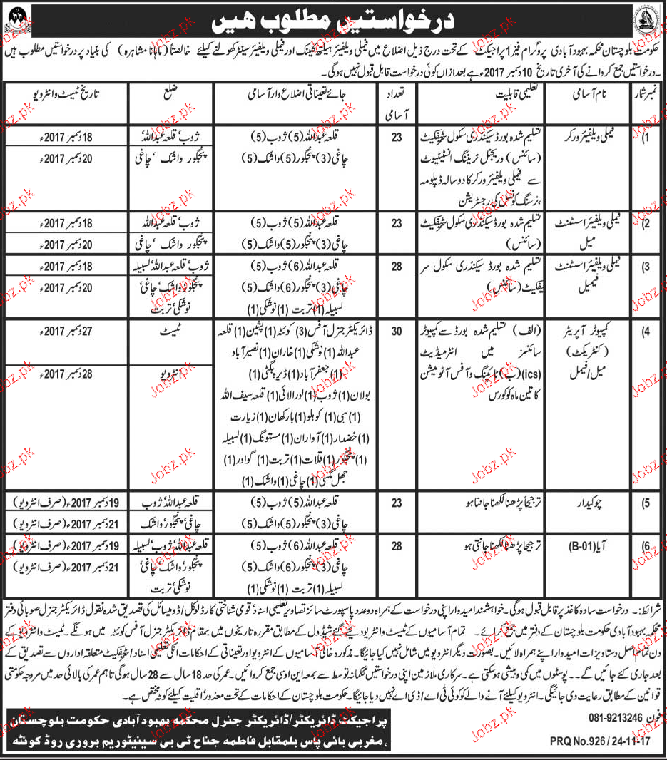Population Welfare Department Jobs