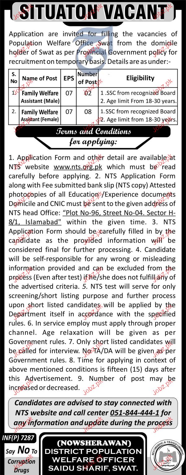 Latest Population Welfare Department Admin Clerical Posts Swat 2025