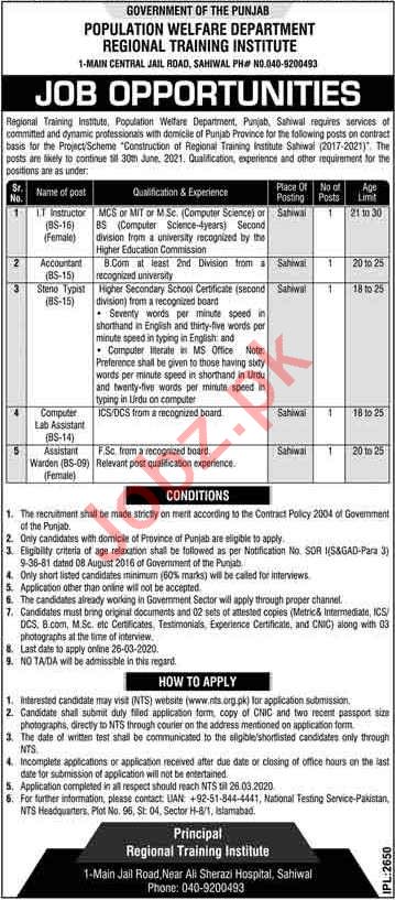 Latest Regional Training Institute Management Posts Sahiwal 2025