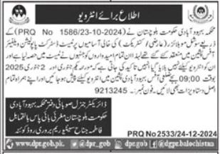 Population Welfare Department invites applications for job positions advertised in daily Jang dated 25 December 2024 for following vacancies in Quetta, pishin Balochistan Pakistan.